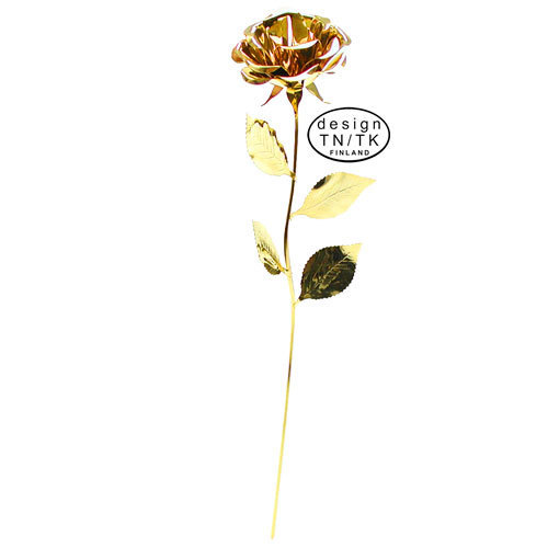 Kullattu juhlaruusu irtonaisella kullatulla kaiverruslaatalla. Kukka ja varsi hopeoitu. Ruusu toimitetaan läpinäkyvässä lahjapakkauksessa. Kukka, joka ei kuihdu.