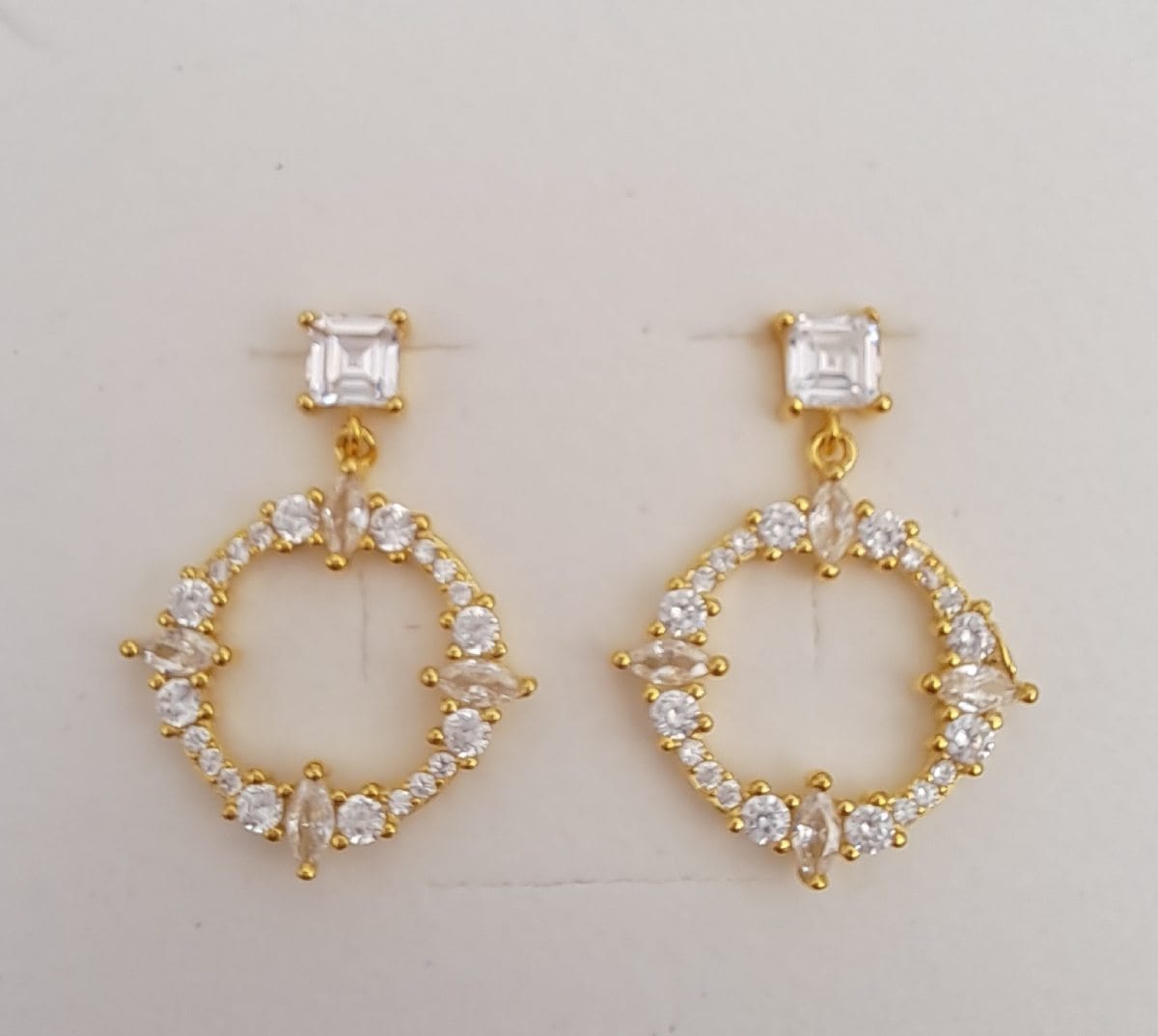 Ihastuttavat korvakorut kullattua hopeaa. Koristeena kirkkaita zirkoniakiviä