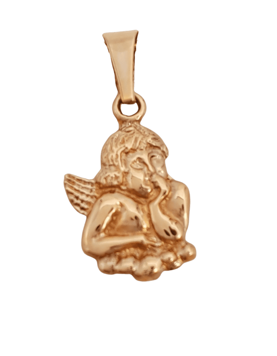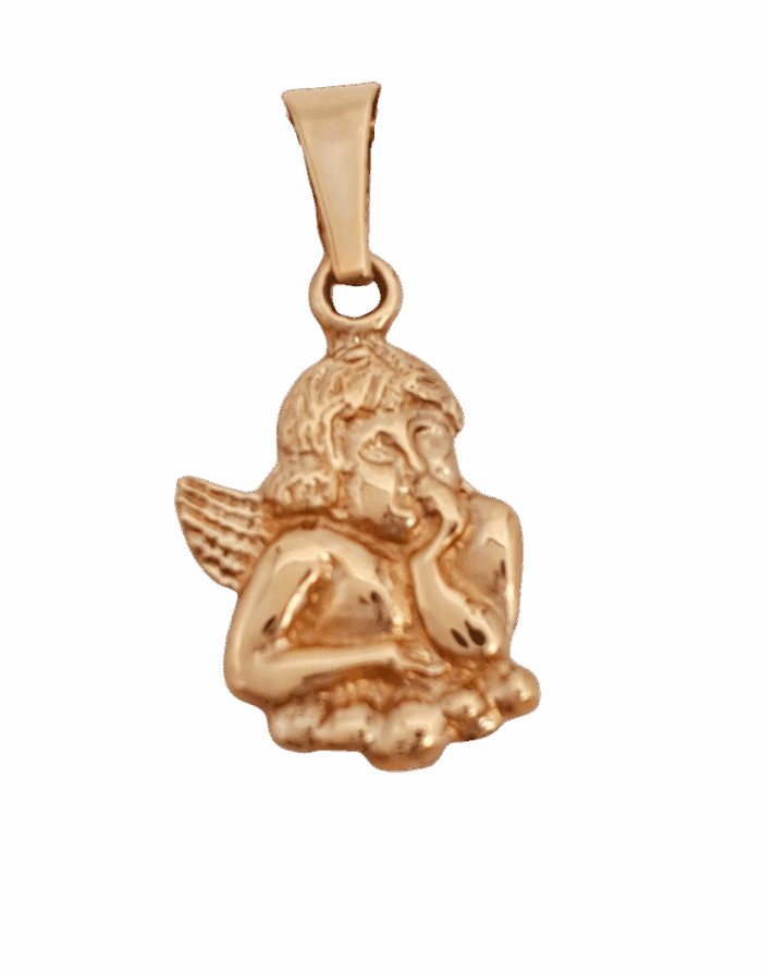 Kaunis ja yksityiskohtainen keltakultainen enkeliriipus.
