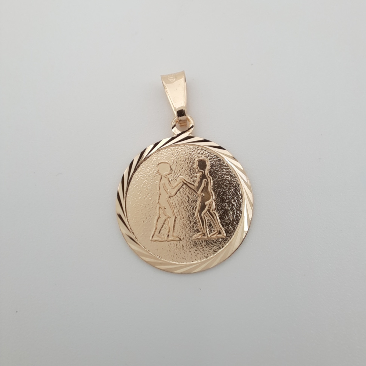 Upea kultainen Kaksonen horoskooppiriipus. Timanttileikattu koristereunus.