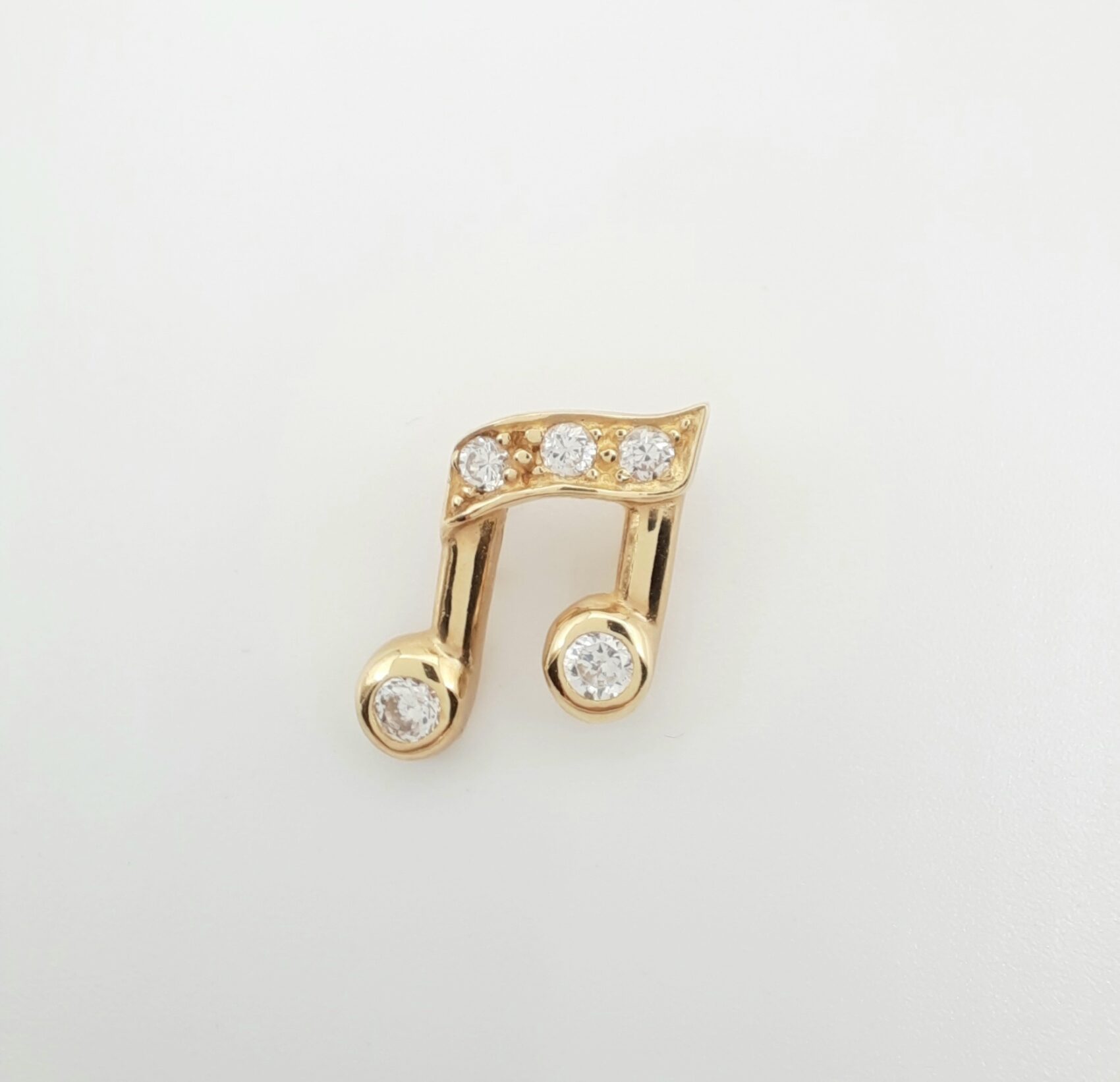 Kultainen nuottiriipus zirkoniakivillä.