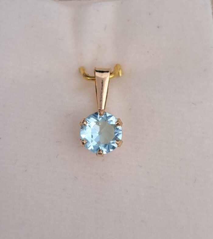 Ihanan siro ja pieni kultainen riipus. Vaaleansininen kivi on sädehtivä, kooltaan 5 mm zirkoniakivi.