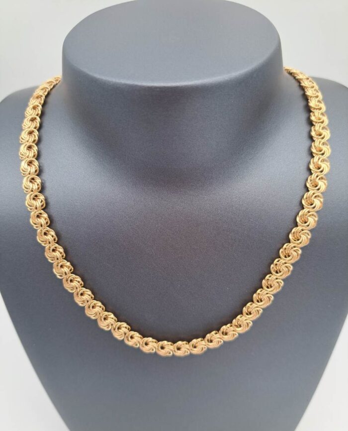 Kaunis,ohuesta kultalangasta punottu kultainen Rosetta kaulakoru.
