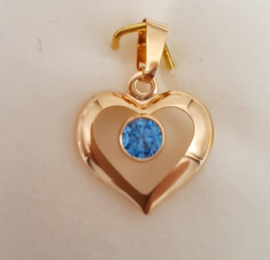 Kultainen sydänriipus sininen kivi 10349