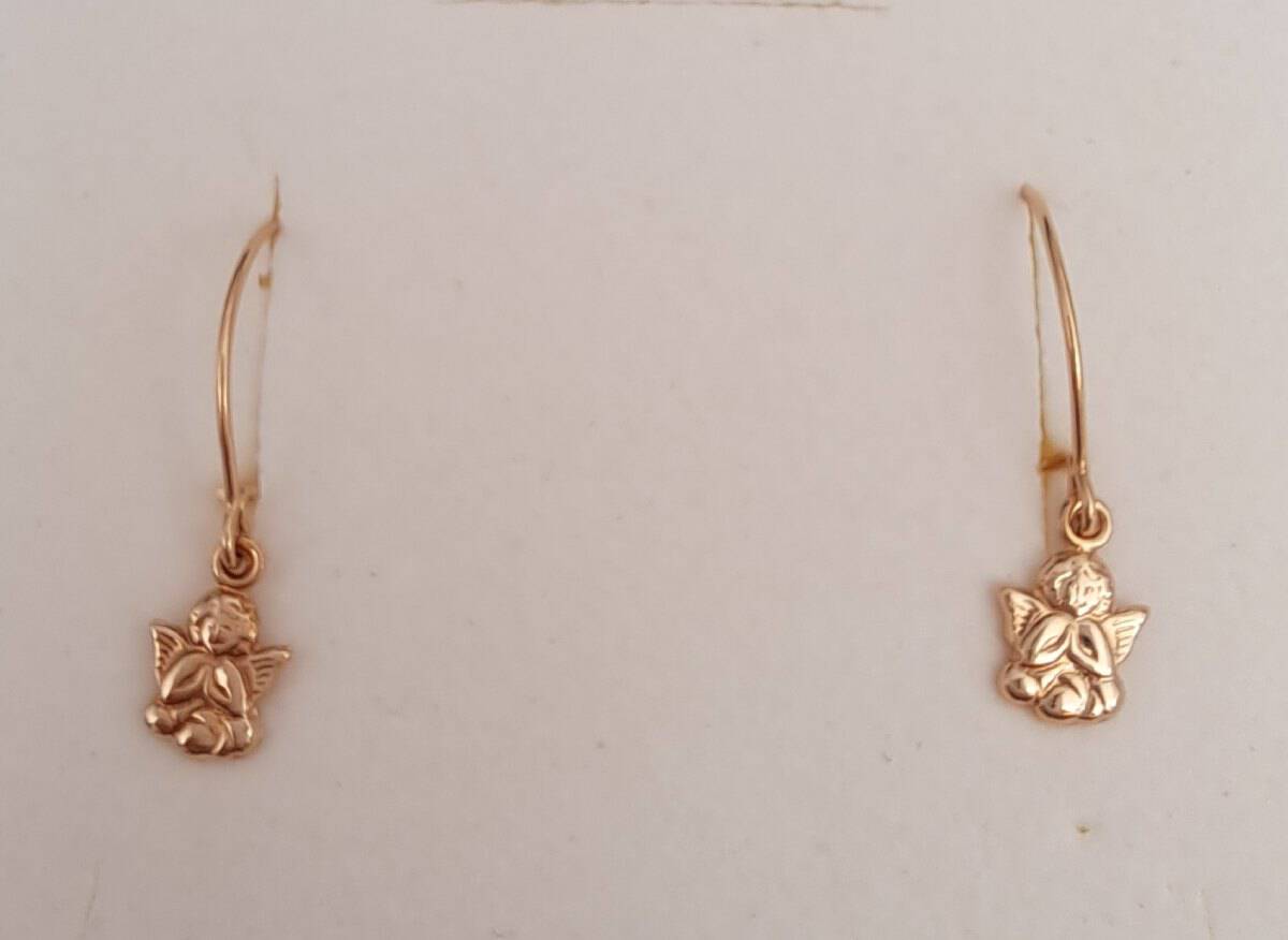 Tyylikkäät kultaiset korvakorut, jossa koristeena enkelihahmo