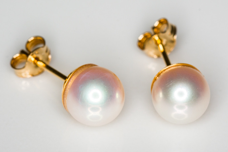 Tyylikkäät kultaiset korvakorut, jossa valkoinen makean veden helmi.