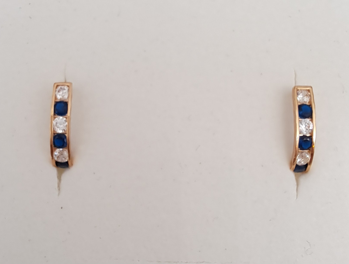 Korussa koristeena sinisiä ja kirkkaita zirkoniakiviä