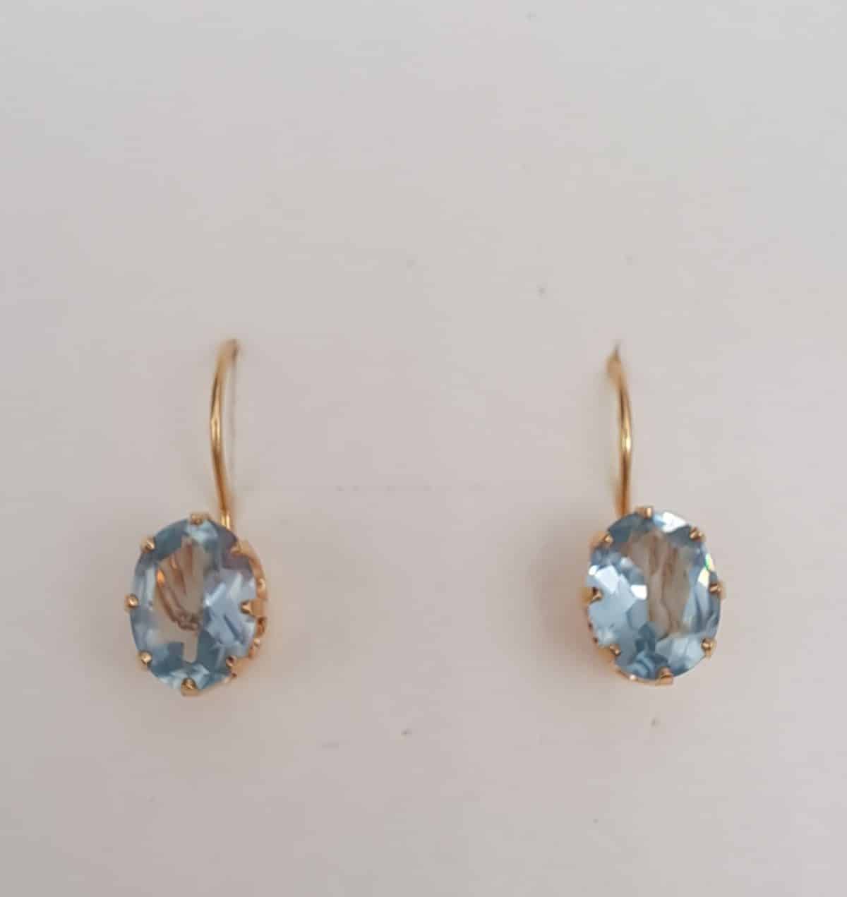 Klassiset kultaiset koukkukorvakorut vaaleansinisellä, kimaltavalla zirkoniakivellä.
