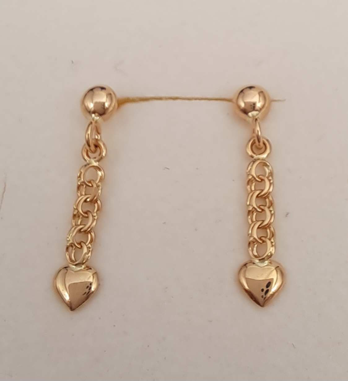 Tyylikkäät kultaiset korvakorut, jossa koristeellisessa bismarck-ketjussa on sydän