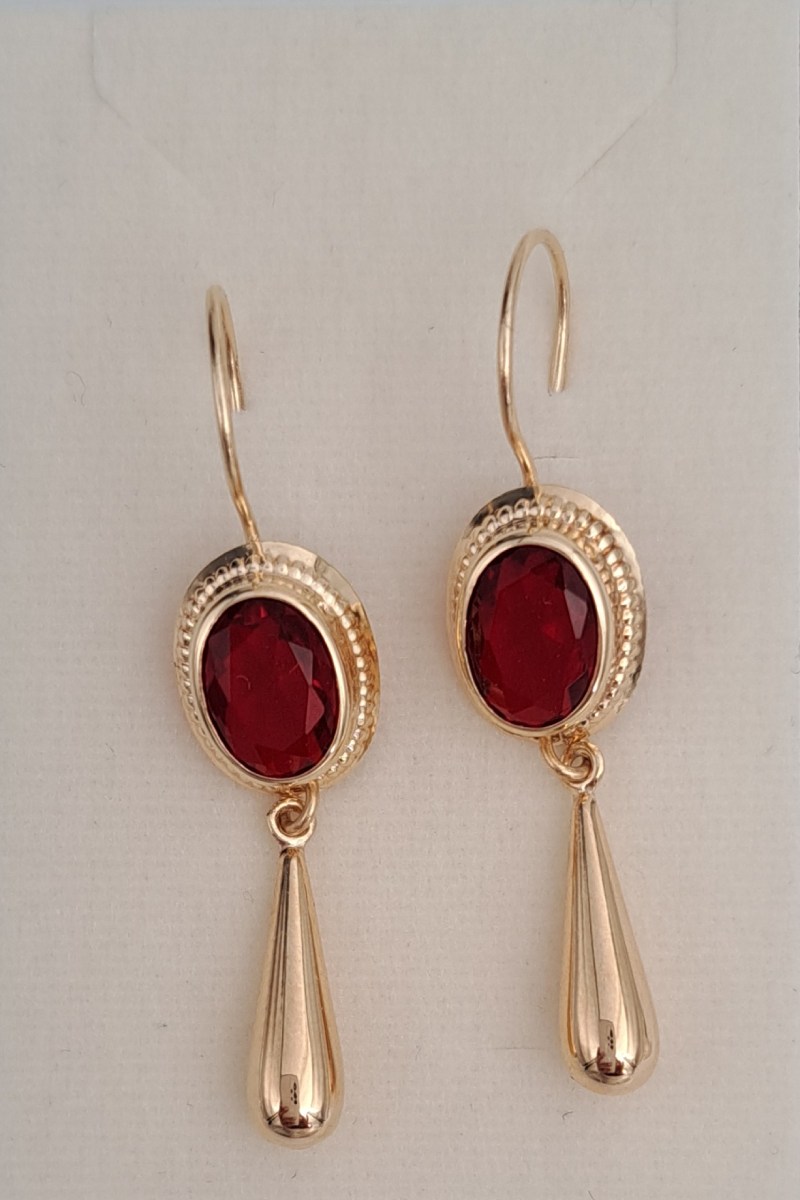 Kultaiset kyynelkorvakorut punaisella kivellä