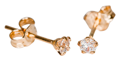 3,5 mm kokoiset säihkyvät, kirkkaat zirkoniakivet. Tappikiinnitys, 14 k kultaa. Kotimainen tuote.