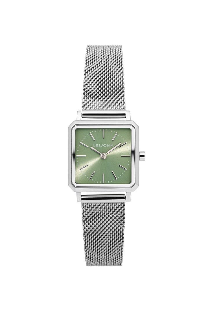 Tamä kaunis vihreä kellotaulu on kuin raikkaan kuurankukan kosketus – kirkas ja uudistava. Sen hohde muistuttaa jalokiven pintaa ja kutsuu uuteen aamuun!