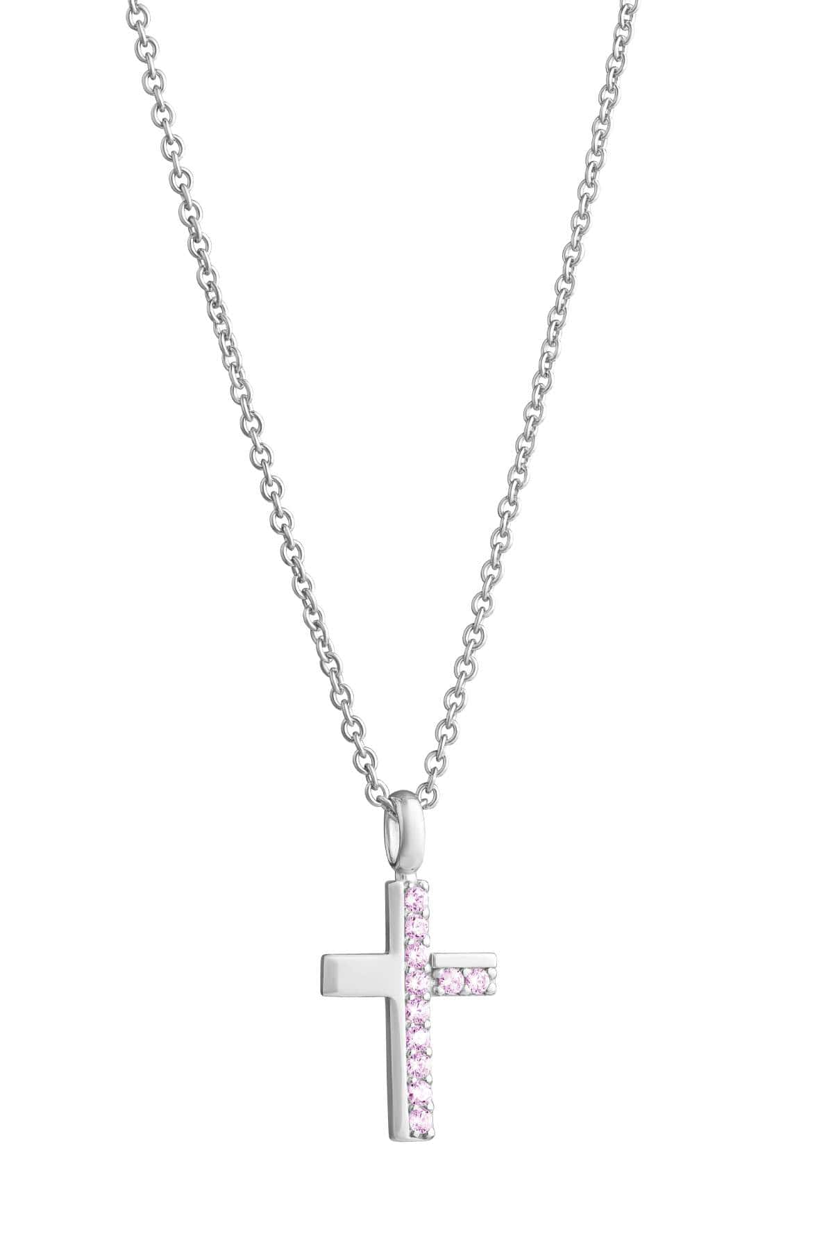Ihastuttava ja näyttävä ristiriipus, jossa koristeena vaaleanpunaisia zirkoniakiviä