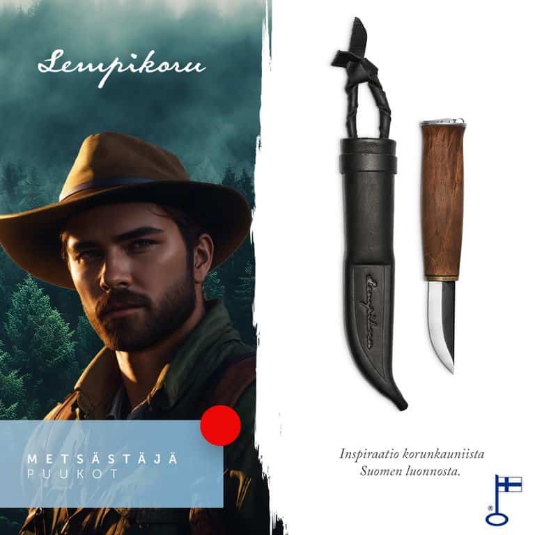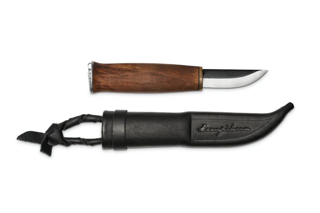 Upea, pienempi puukko hopeasta, hiiliteräksestä ja visakoivusta.