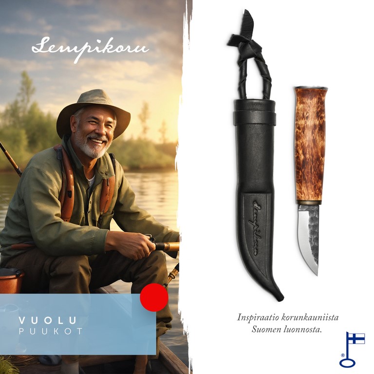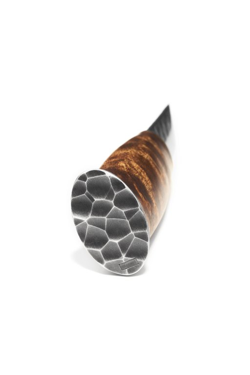 Upea, isompi puukko hopeasta, hiiliteräksestä ja visakoivusta.