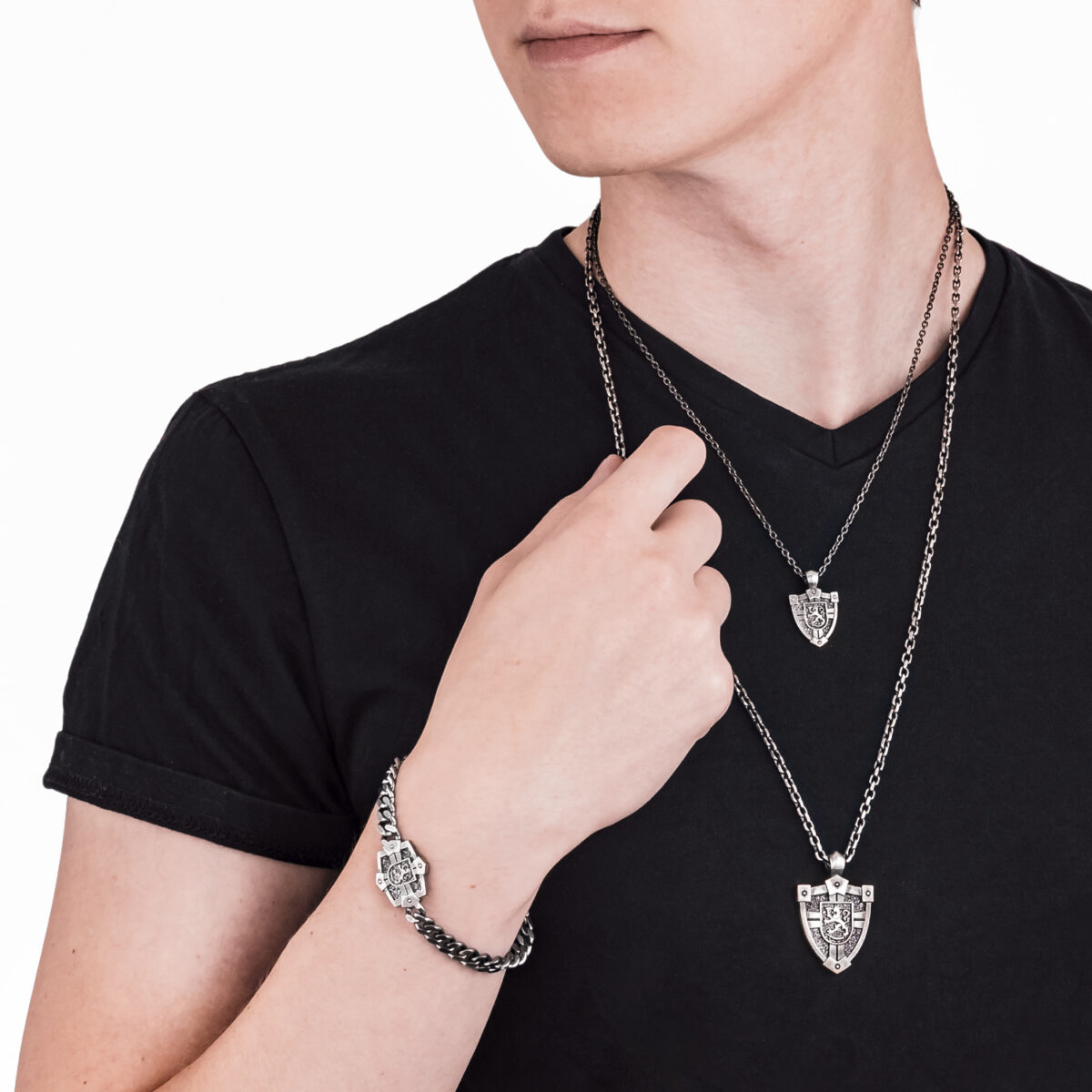 Hopeinen suurempi 1917-riipus on näyttävä koru, jonka riipus on kooltaan 28×43 mm ja ketjun pituus on 70 cm.