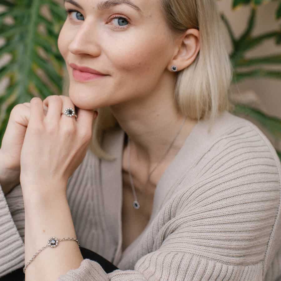 Pinnoitamme kirkkaat hopeakorumme tummumisen ehkäisemiseksi, joten ne säteilevät kauniina jopa vuosikausia. Käytämme korujemme valmistuksessa 100-prosenttisesti kierrätettyä hopeaa.