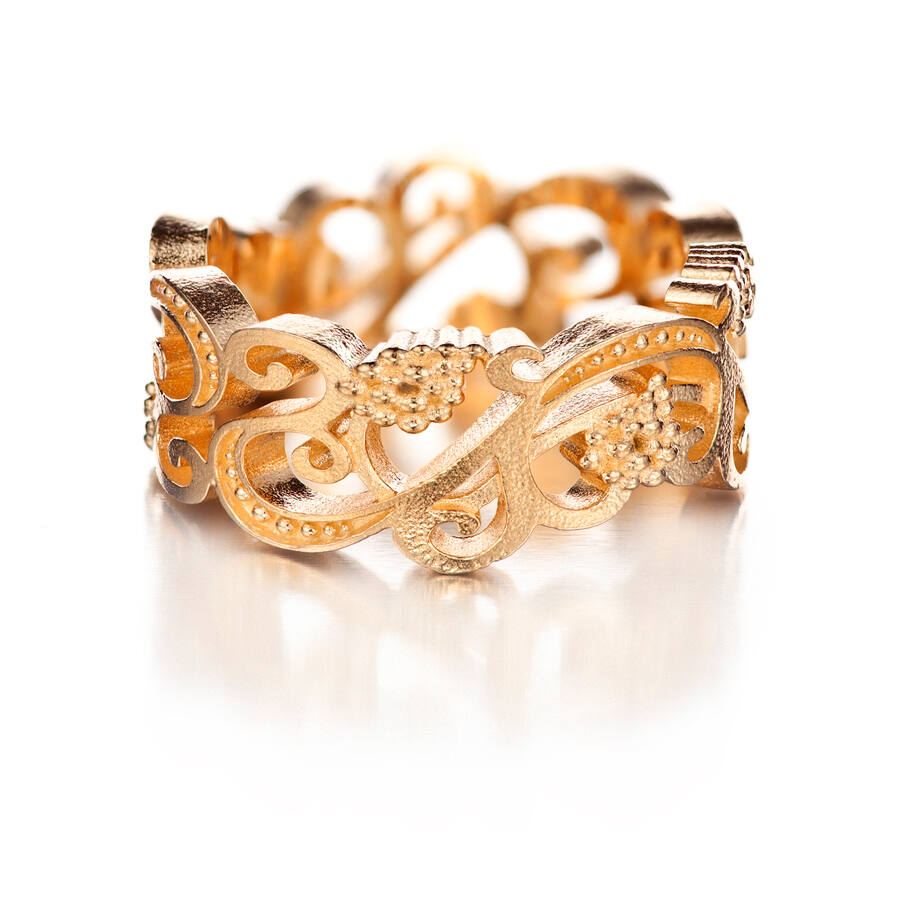 Upea Carina Blomqvistin suunnittelema keltakultainen sormus.