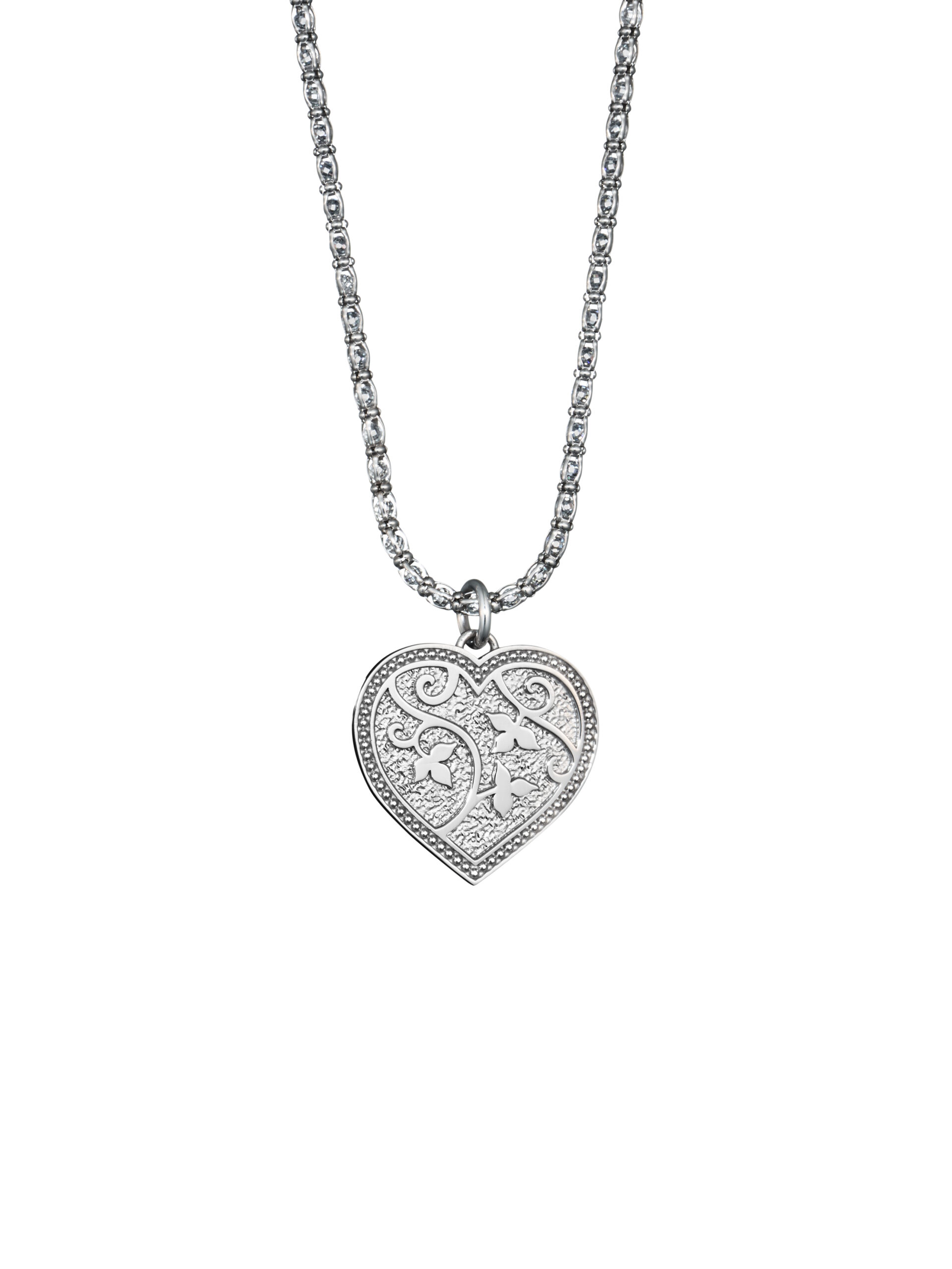 Hento-sarja täydentyi kauniilla sydänkoruilla, joista tämä on näyttävin. Suuri sydänriipus yhdistettynä upeaan ketjuun, jonka sisällä säihkyvät zirkoniat, sopii upeasti juhlaviinkin tilaisuuksiin.