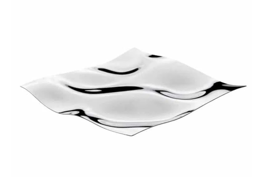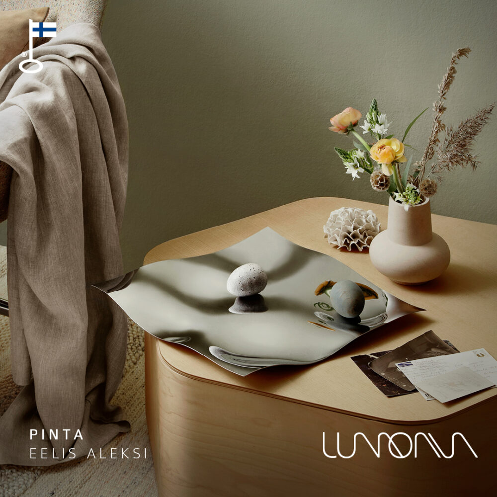 Lumoava Pinta -tarjoiluvati toistaa suomalaisen järven tyyntä pintaa. Tämän isomman Pinta-tarjoiluvadin koko on 377×377 mm.