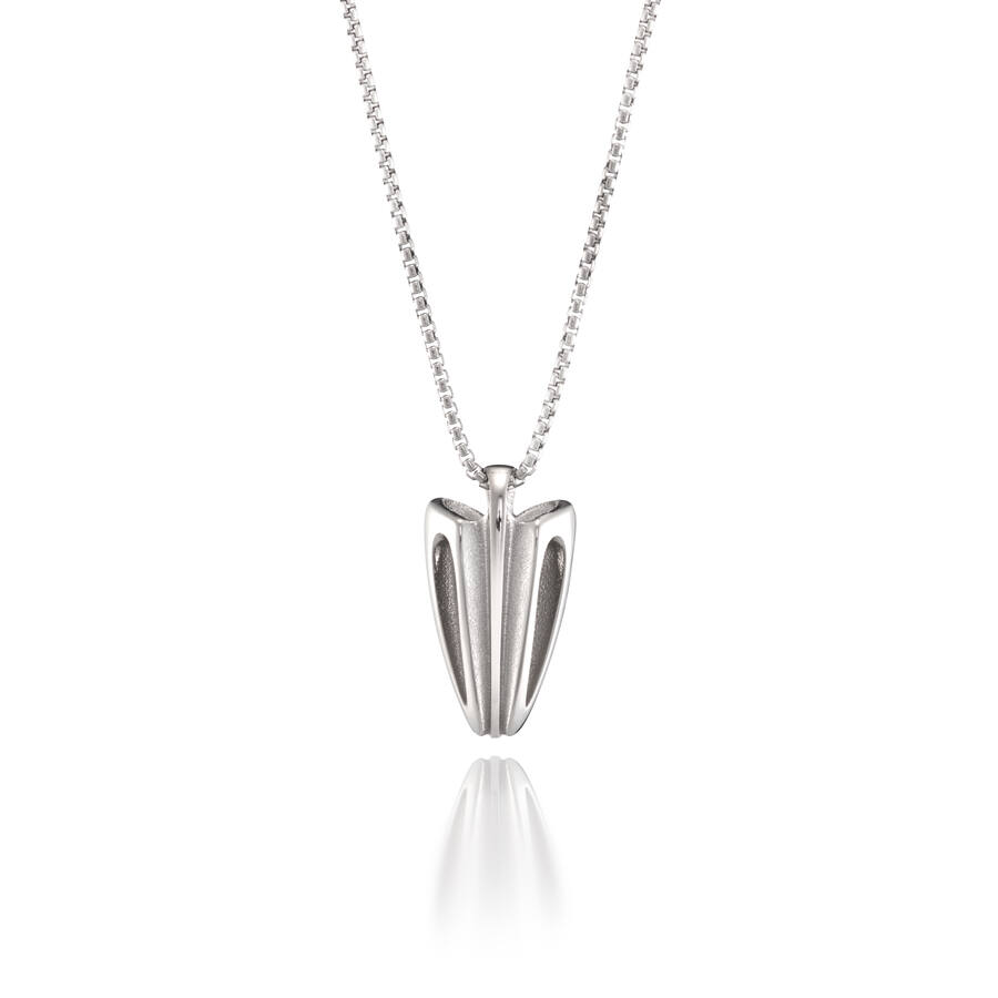 Rossi-riipuksen voima syntyy kiiltävän ja mattapinnan kontrastista ja voimakkaista ja virtaviivaisista muodoista. Virtaviivainen Rossi-riipus on saanut inspiraationsa automuotoilusta ja siinä on nähtävillä voima, vauhti ja itsevarmuus – se on koru vahvalle ja tyylinsä tuntevalle korujen käyttäjälle ja toimii monen tyylin viimeistelijänä.