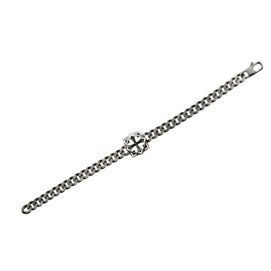 Hopeinen Soturi-rannekoru on näyttävä koru miehille. Korun pituus on 21 cm ja se on valmistettu vankasta panssariketjusta.