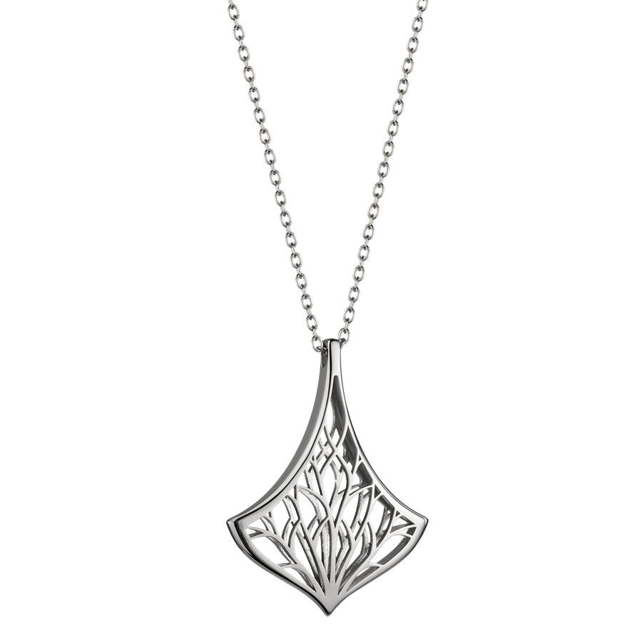 Hopeisen korun koko on 39×50 mm ja ketjun pituus on valittavissa 45/50 cm tai 70/85 cm.