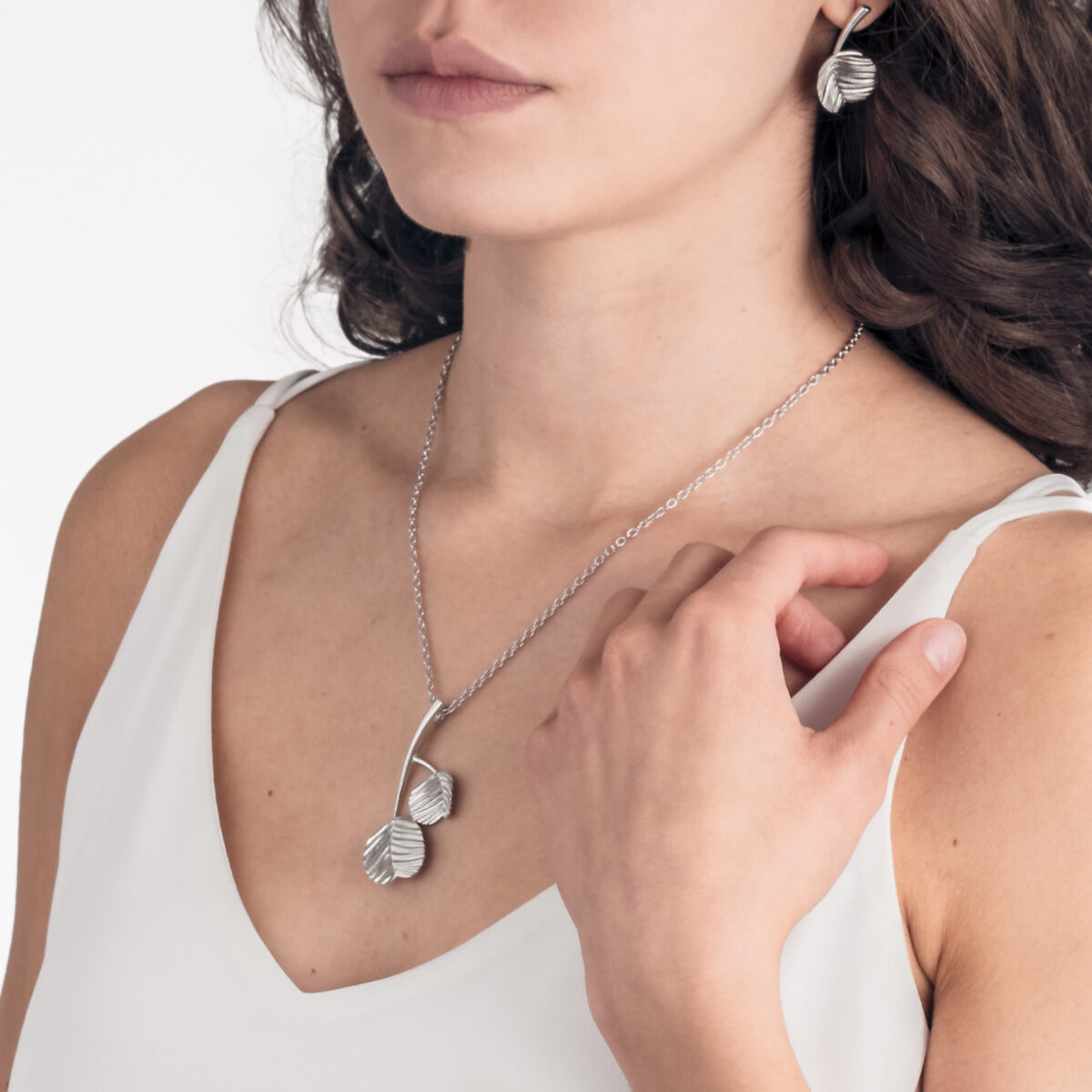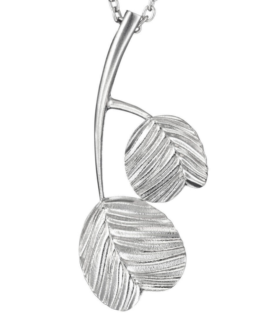 Verso-sarjan riipuksessa korusarjan lehtiaihe pääsee kauniisti oikeuksiinsa. Hopeisen riipuksen koko on 23×51 mm ja ketjun pituus on säädettävissä 45/50 cm.