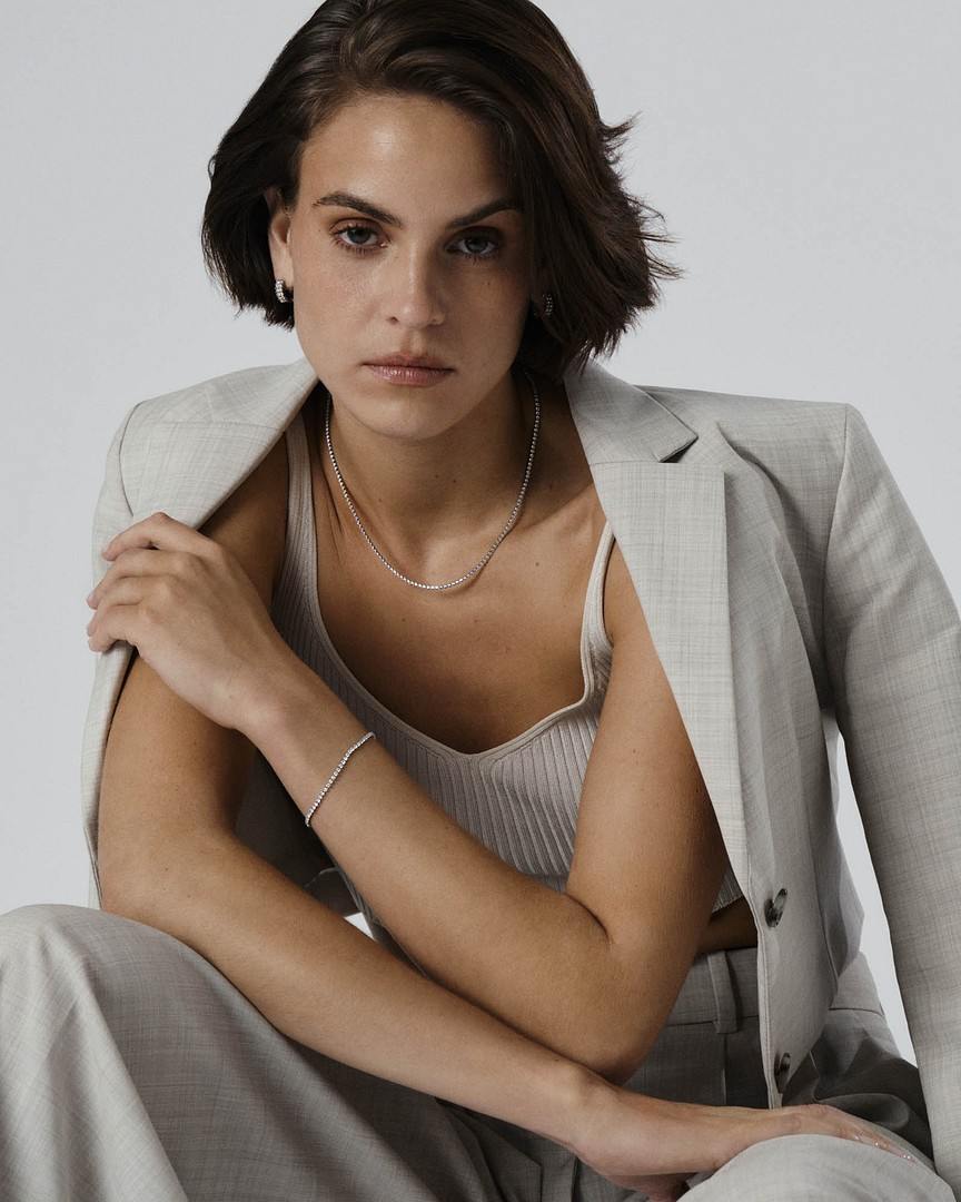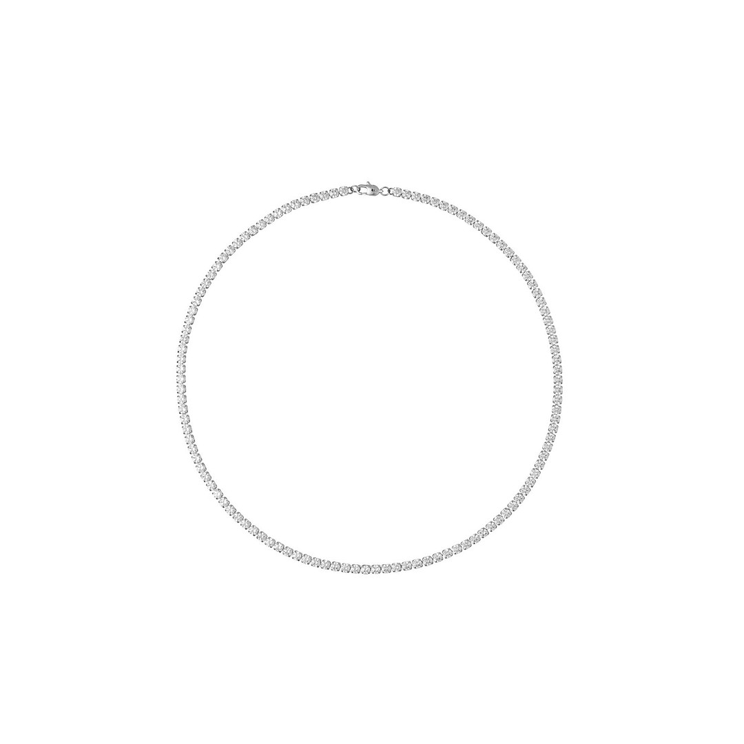 Nauti säihkyvästä, ruostumattomasta teräksestä valmistetusta kaulakorusta, joka on koristeltu kiiltävillä zirkonikivillä. Voit olla huoletta tämän korun kanssa – se ei haalistu tai kärsi arjen rasituksista. Tämä on hillitympi versio tennis-kaulakorustamme: kivet ovat pienemmät ja ilme hienostuneempi.