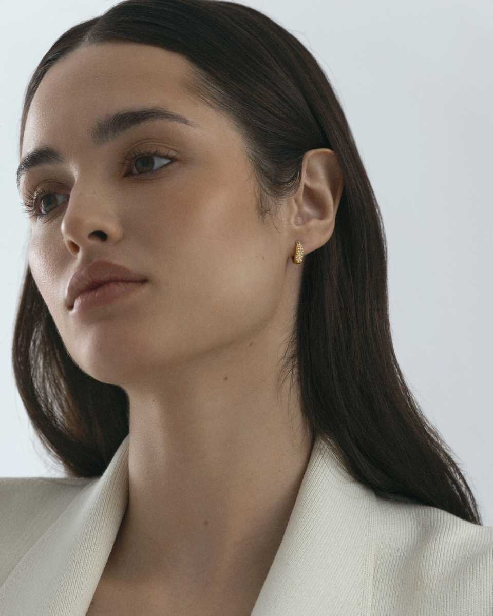 ”Kooltaan hillityt, mutta tyyliltään maksimaaliset. Pavé Precious Hoops -korvakorut on koristeltu säihkyvillä kuutiollisilla zirkonioilla ja valmistettu ruostumattomasta teräksestä 18K kullanvärisellä PVD-pinnoitteella. Kestävät ja vedenkestävät – säilyttävät värinsä ja kiiltonsa ajan myötä.