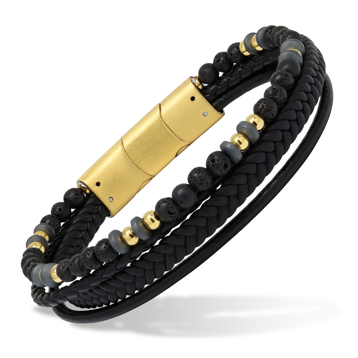 Miesten tyylikäs nahkarannekoru terästä ja laavaa