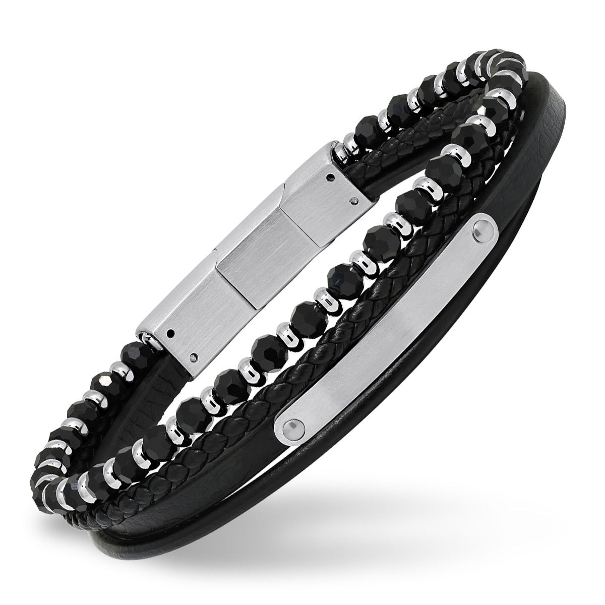 Miesten tyylikäs nahkarannekoru teräslaatalla