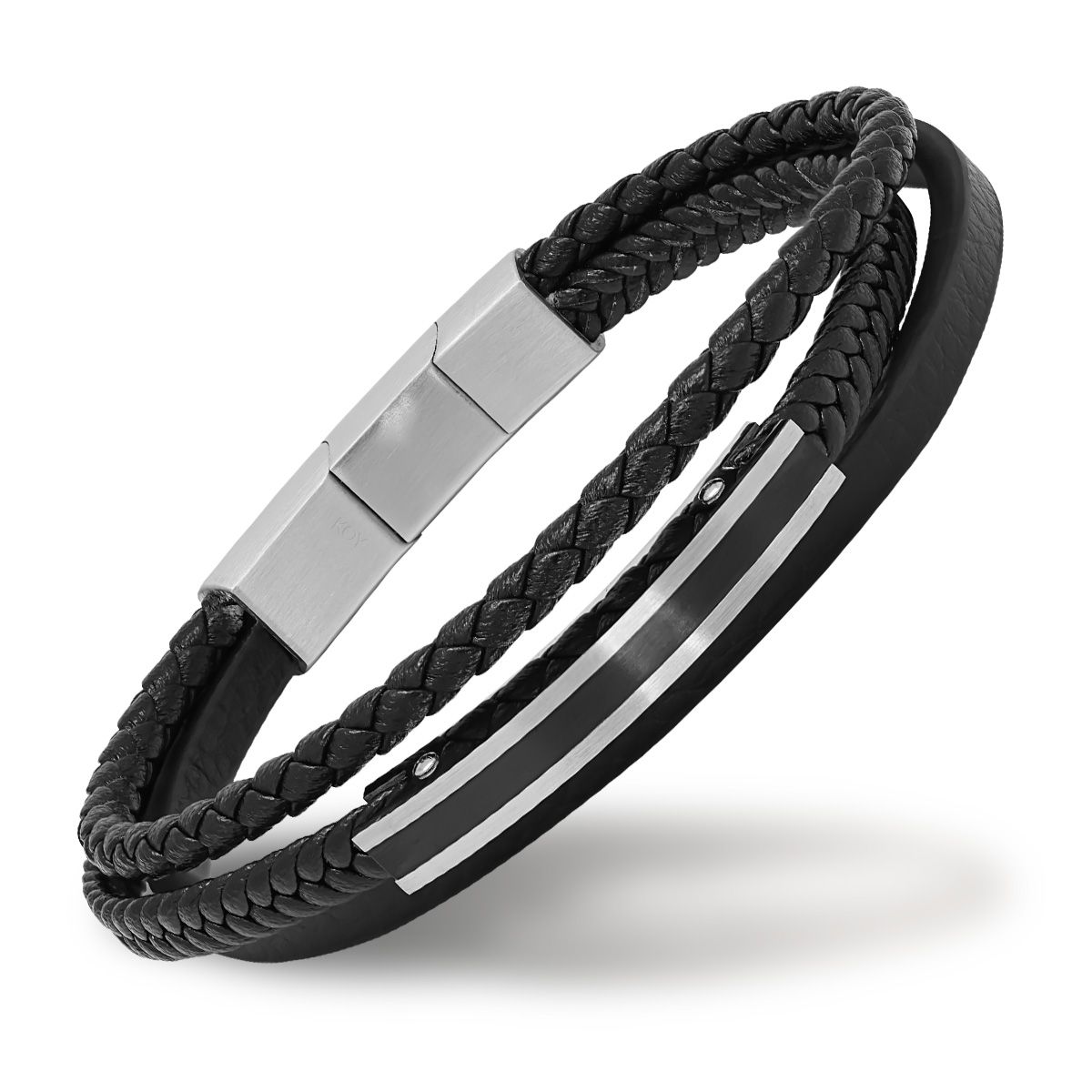 Miesten tyylikäs nahkarannekoru teräslaatalla