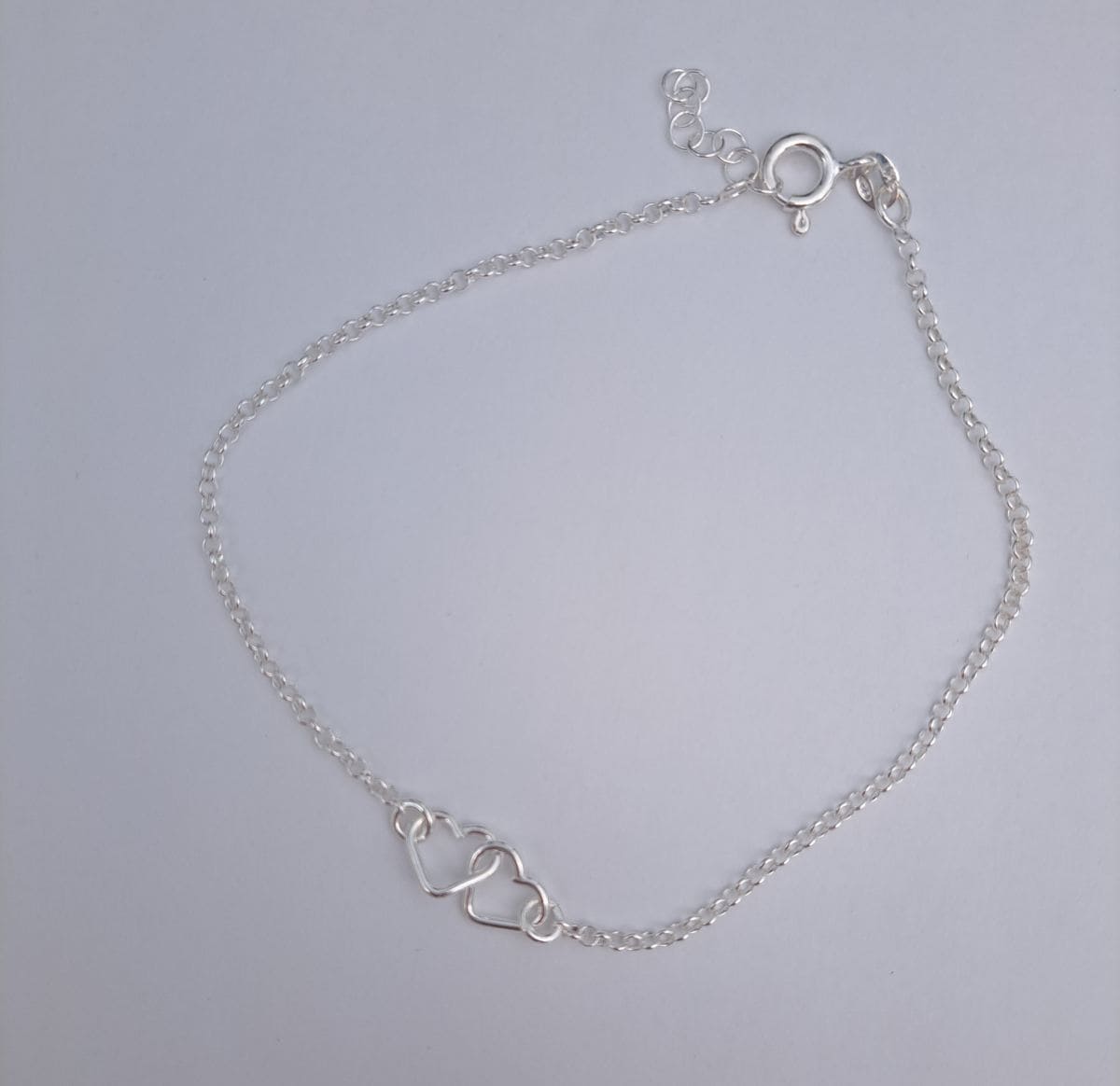 Ihastuttava hopeinen nilkkakoru, jossa koristeena kaksi avonaista sydäntä