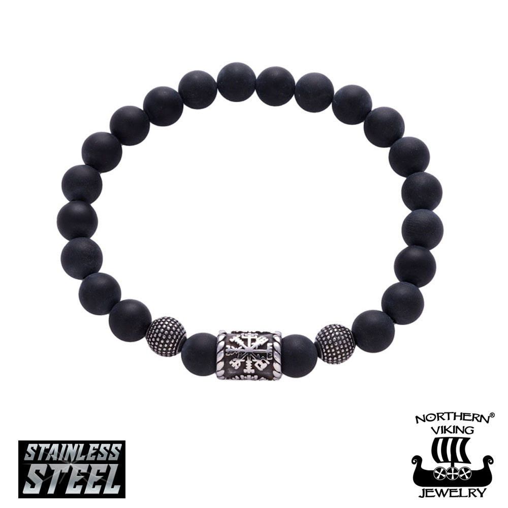 Kivihelmistä valmistettu Northern Viking Jewelry -rannekoru jossa teräshela koristeena.