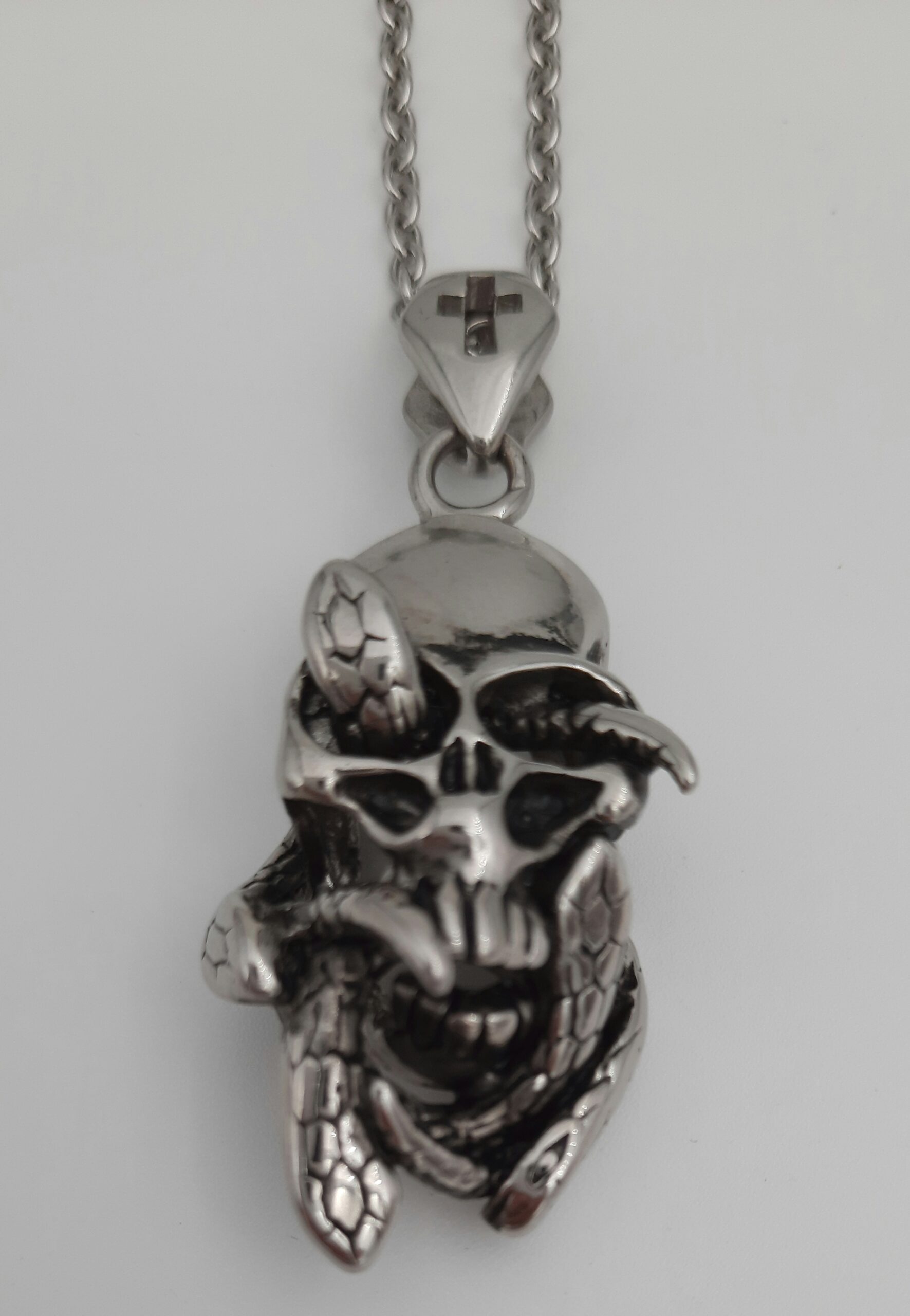 Pääkalloriipus ja käärmeet-riipus teräs
