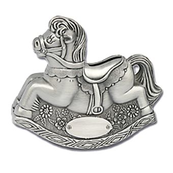 Keinuhevosen muotoinen säästölipas kastelahjaksi pienokaiselle.