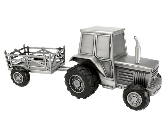 Upea traktori ja peräkärry-pankki kastelahjaksi pienokaiselle.