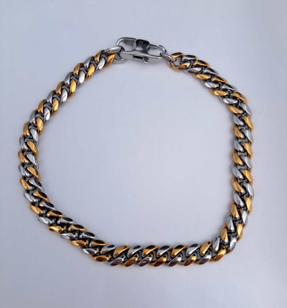 Näyttävä ja kestävä panssariketju kaksiväristä terästä.
