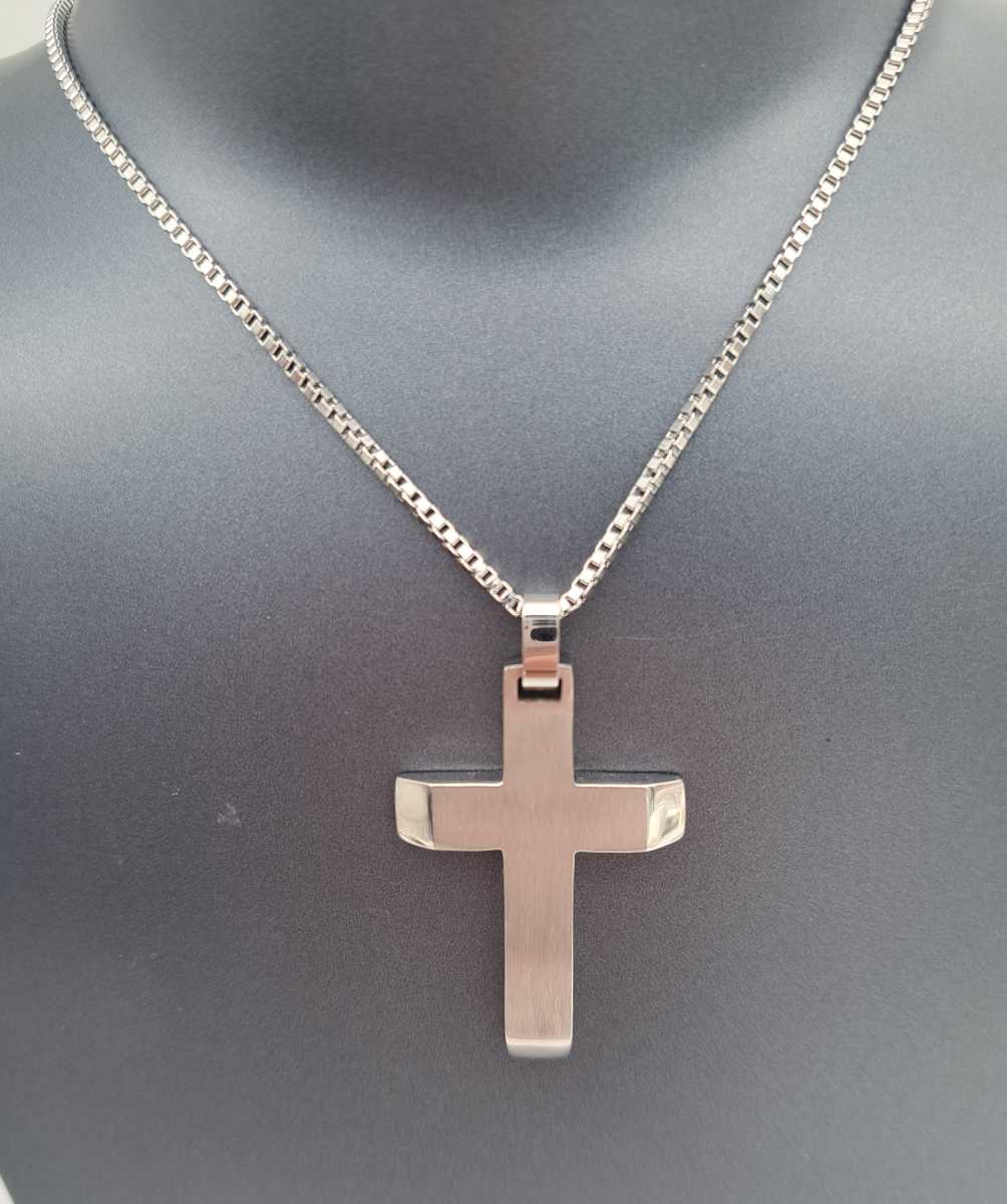 Tyylikäs ristiriipus harjattua ja kiiltävää terästä.