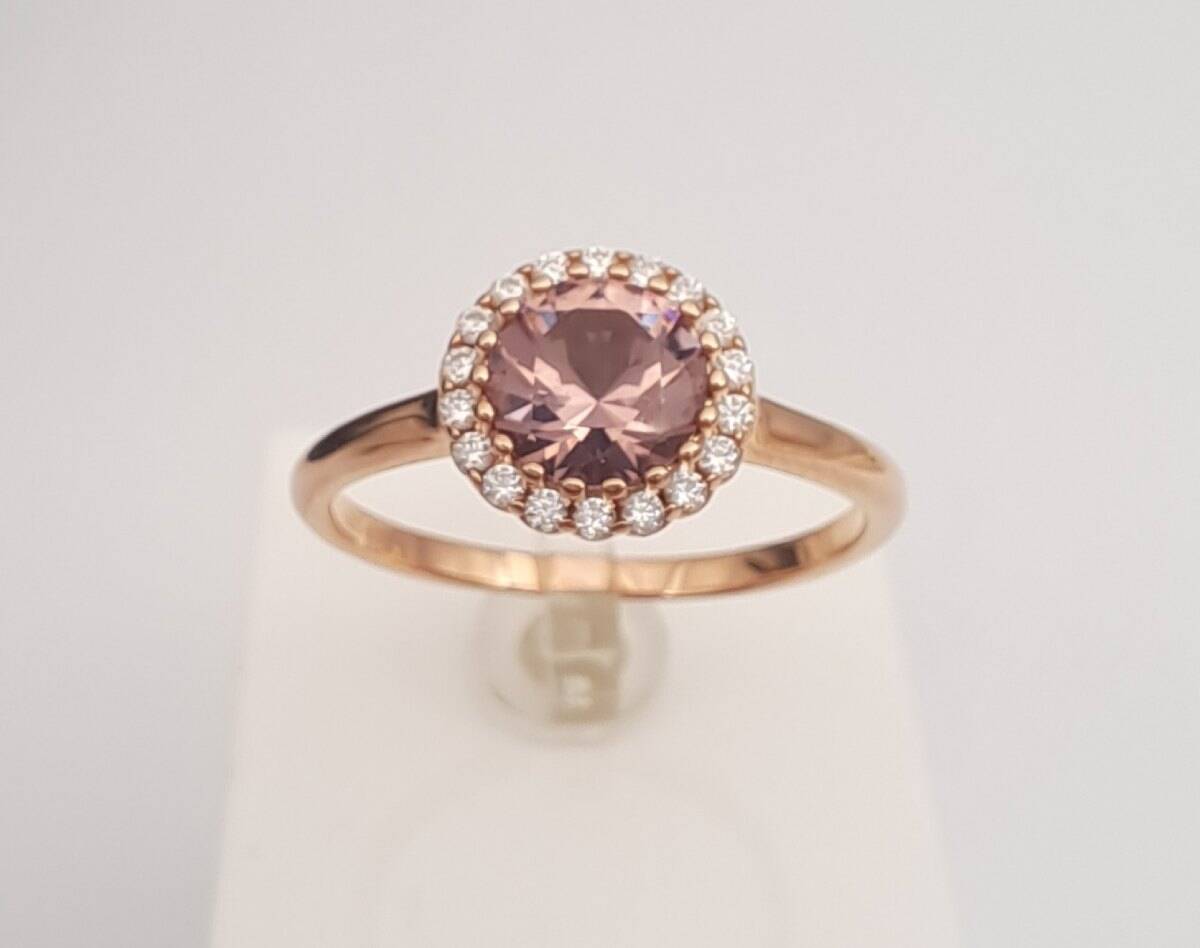 Ruusukultainen hopeasormus morganiitilla