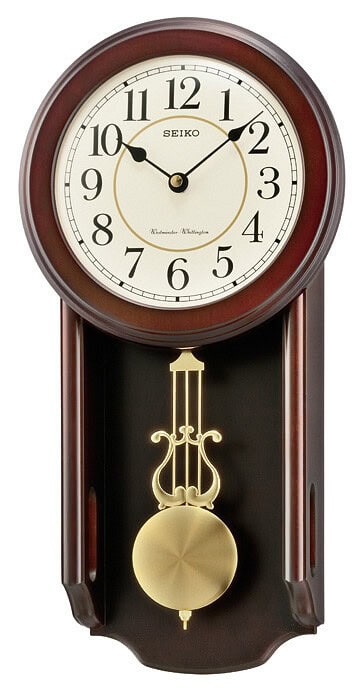 Seiko seinäkello on pyöreällä kellotaululla varustettu ja westerminston / whittington-lyönneillä oleva seinäkello.