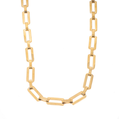 Pelkistetty upea kullattu teräskaulaketju kiiltävällä pinnalla. Ketjussa on säädettävä pituus 42-47 cm.