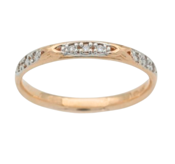 Upea, siro keltakultainen sormus, jossa koristeena timantteja.
