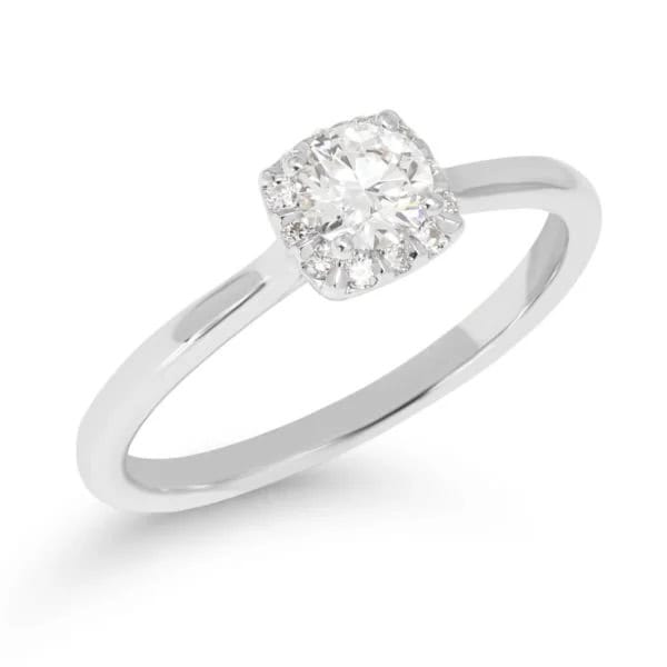 Cushion muotoinen halo-sormus pyöreillä 0.40 G-H/VS laboratoriotimanteilla vihkisormukseksi, kihlasormukseksi tai vaikka hääpäivälahjaksi.