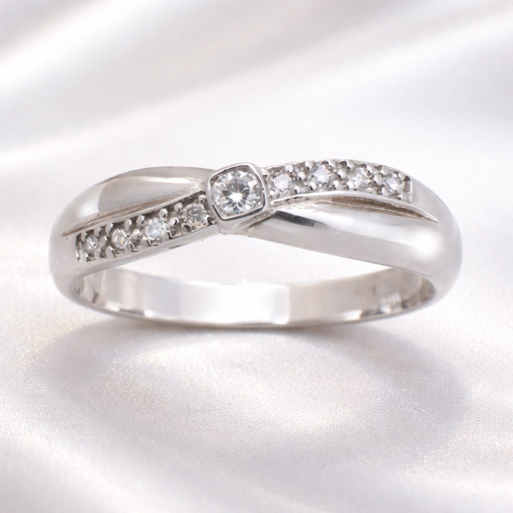Upea sormus, jossa edessä yksi isompi timantti ja reunoilla 8 timanttia.