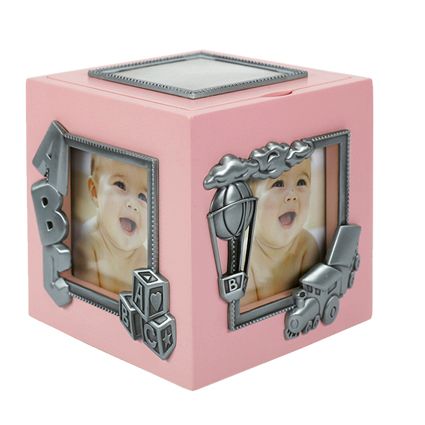 Soivassa vaaleanpunaisessa kuutiossa on neljä hopeanväristä kehystä valokuville sekä kaiverruslaatta kannessa. Kehykseen sopii 7 x 7 cm valokuva. Kuutio soittaa tuttua sävelmää Tuiki tuiki tähtönen. Sopii erinomaisesti kaste- tai nimiäislahjaksi.