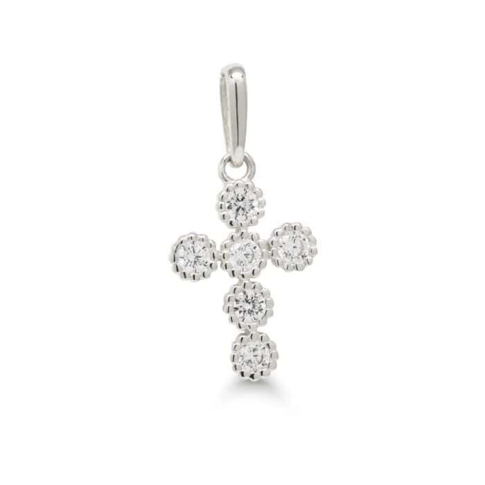 Valkokultainen risti riipus zirkoneilla