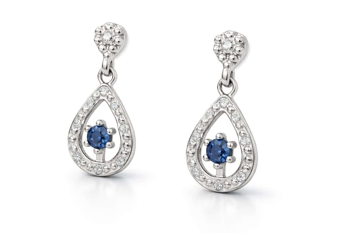Valkokultaiset safiiri-timanttikorvakorut V5272
